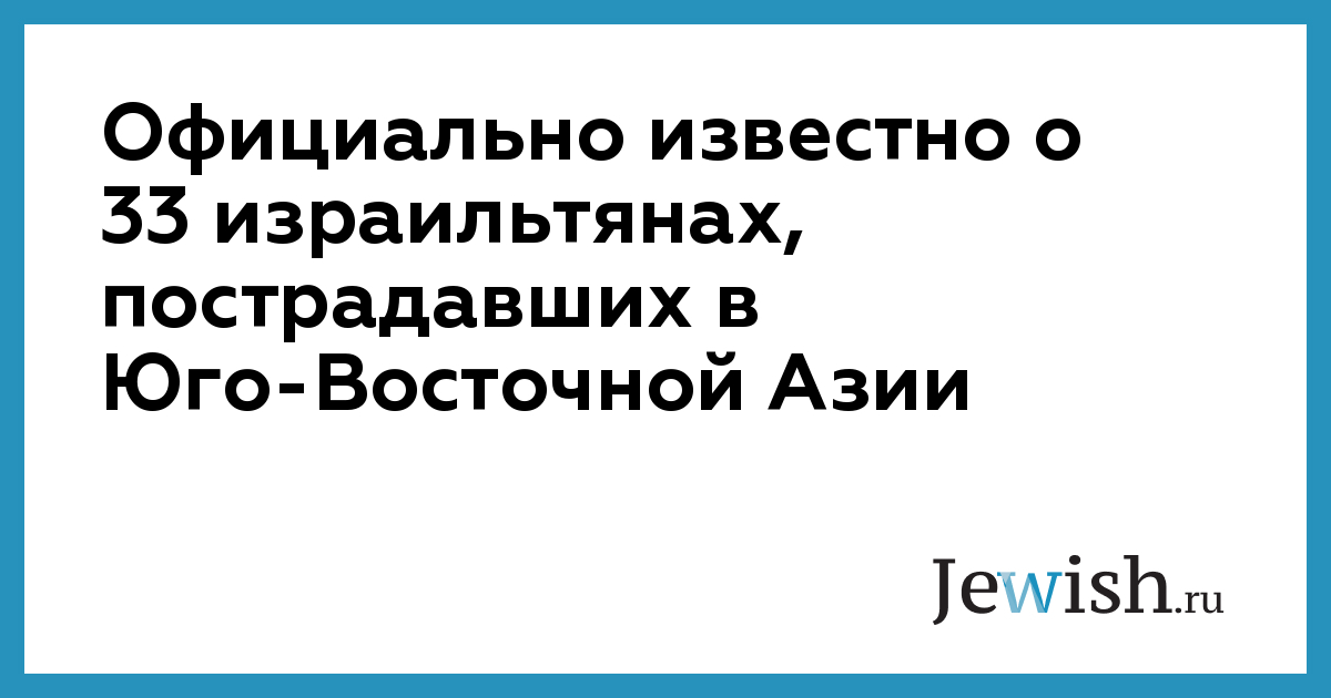 Официально известно о 33 израильтянах, пострадавших в Юго-Восточной Азии