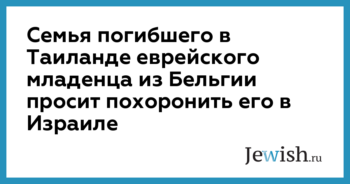 Семья погибшего в Таиланде еврейского младенца из Бельгии просит похоронить его в Израиле