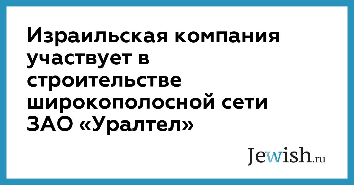 Израильская компания участвует в строительстве широкополосной сети ЗАО «Уралтел»