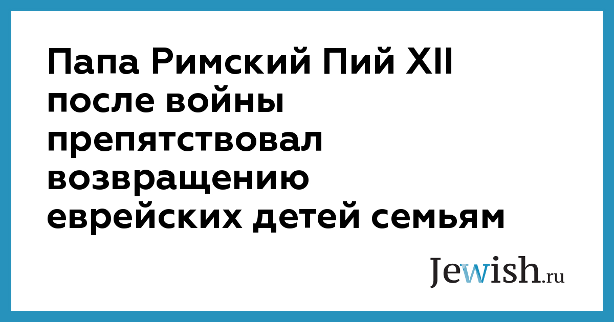 Папа Римский Пий XII после войны препятствовал возвращению еврейских детей семьям