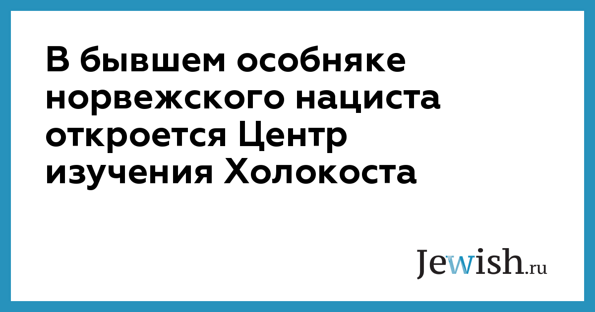 В бывшем особняке норвежского нациста откроется Центр изучения Холокоста