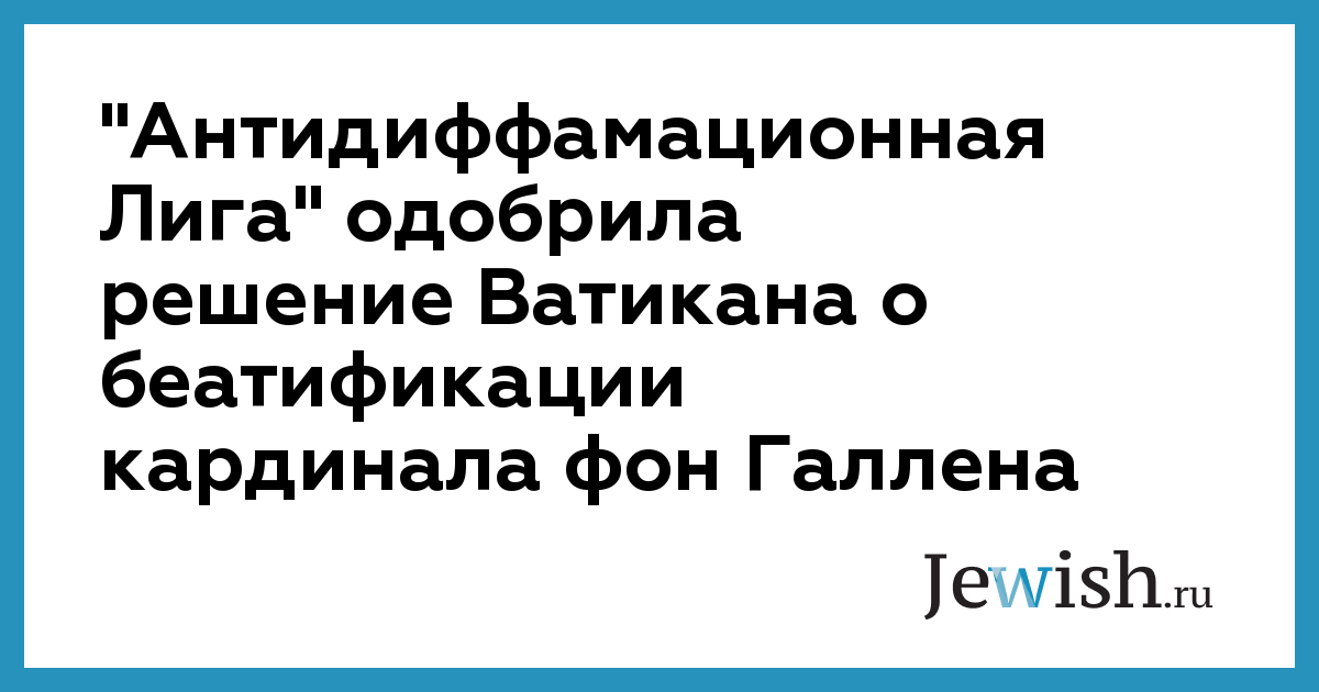 "Антидиффамационная Лига" одобрила решение Ватикана о беатификации кардинала фон Галлена