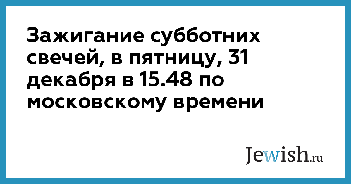 Зажигание субботних свечей, в пятницу, 31 декабря в 15.48 по московскому времени
