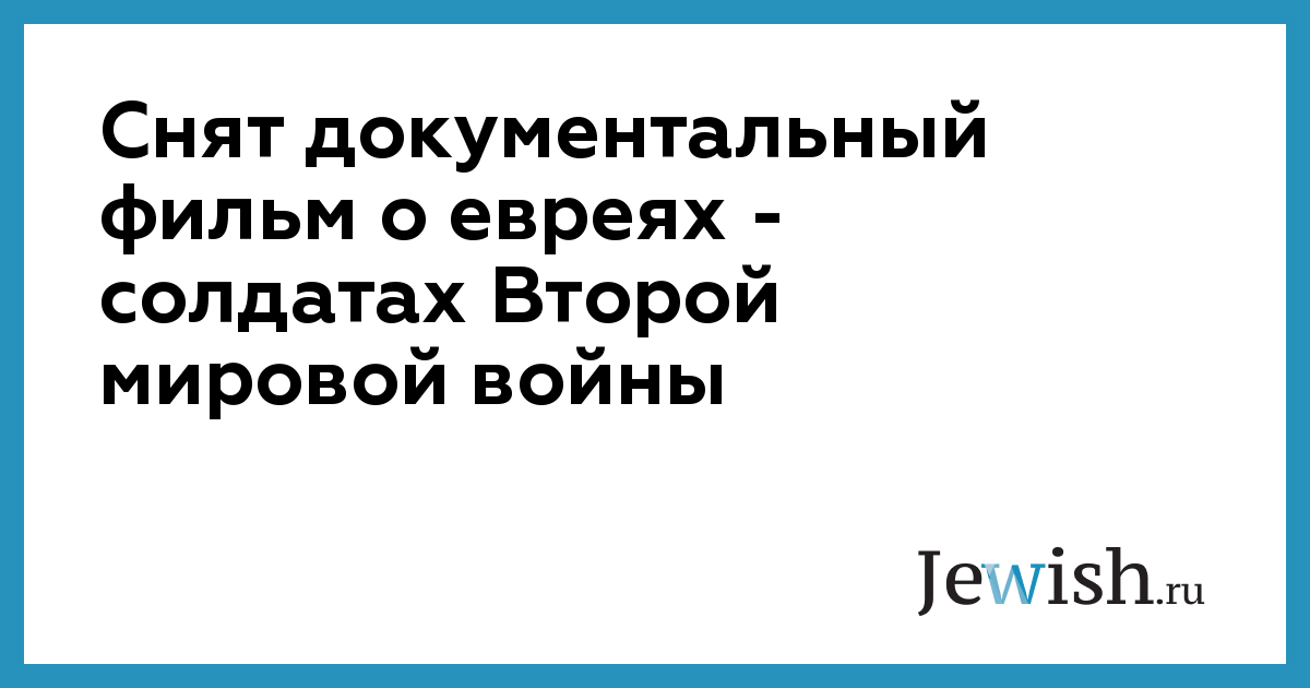 Снят документальный фильм о евреях — солдатах Второй мировой войны