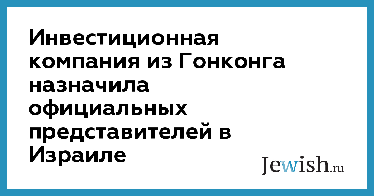 Инвестиционная компания из Гонконга назначила официальных представителей в Израиле