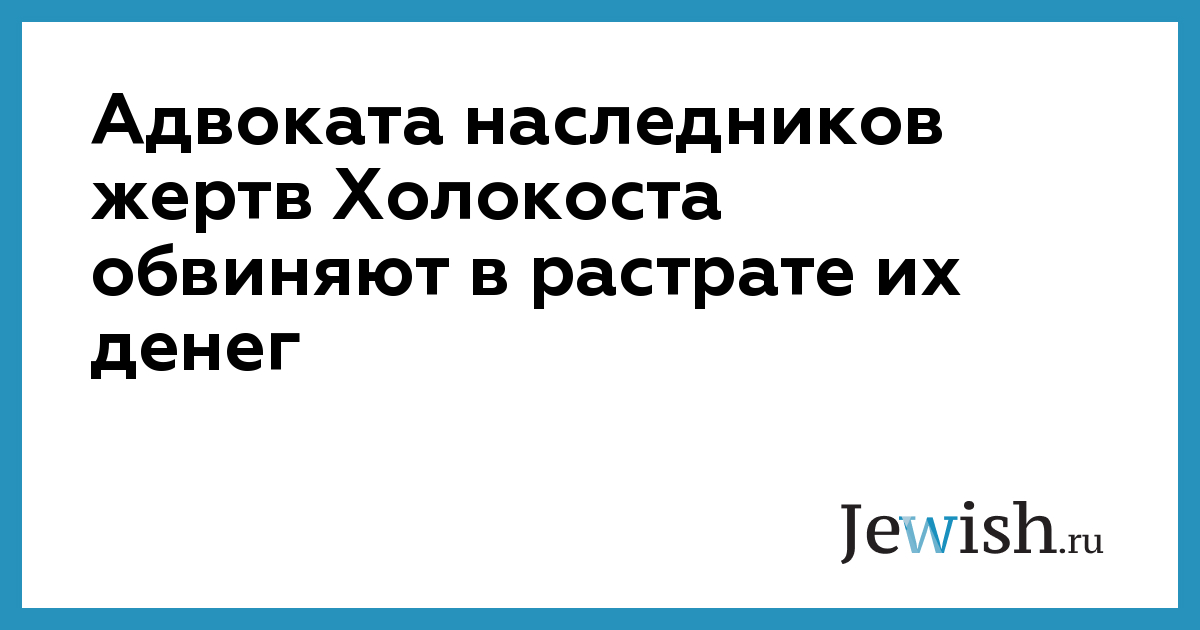 Адвоката наследников жертв Холокоста обвиняют в растрате их денег