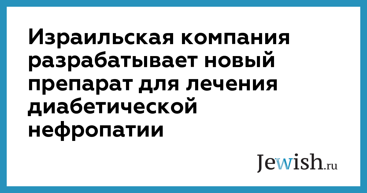 Израильская компания разрабатывает новый препарат для лечения диабетической нефропатии