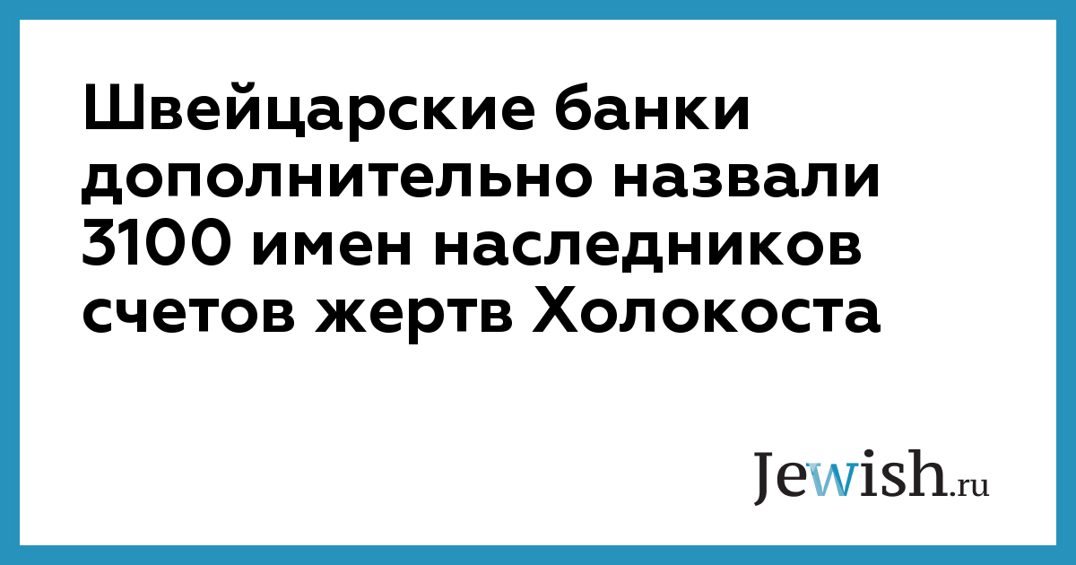 Швейцарские банки дополнительно назвали 3100 имен наследников счетов жертв Холокоста