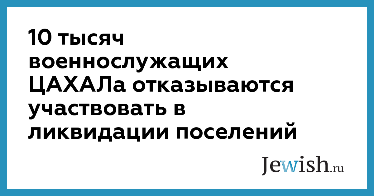 10 тысяч военнослужащих ЦАХАЛа отказываются участвовать в ликвидации поселений