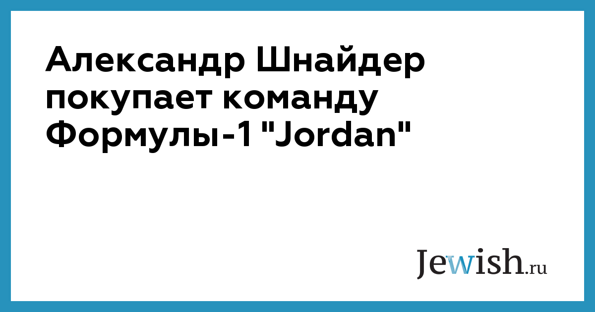 Александр Шнайдер покупает команду Формулы-1 "Jordan"