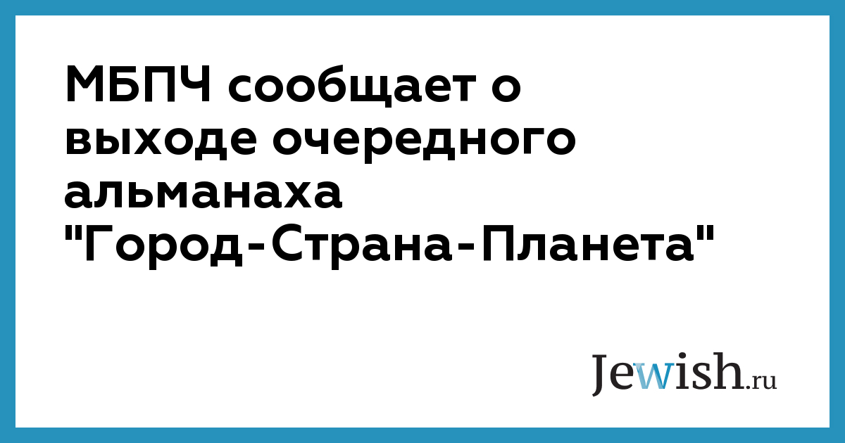 МБПЧ сообщает о выходе очередного альманаха "Город-Страна-Планета"