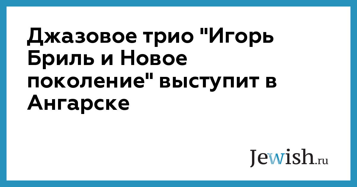 Джазовое трио "Игорь Бриль и Новое поколение" выступит в Ангарске