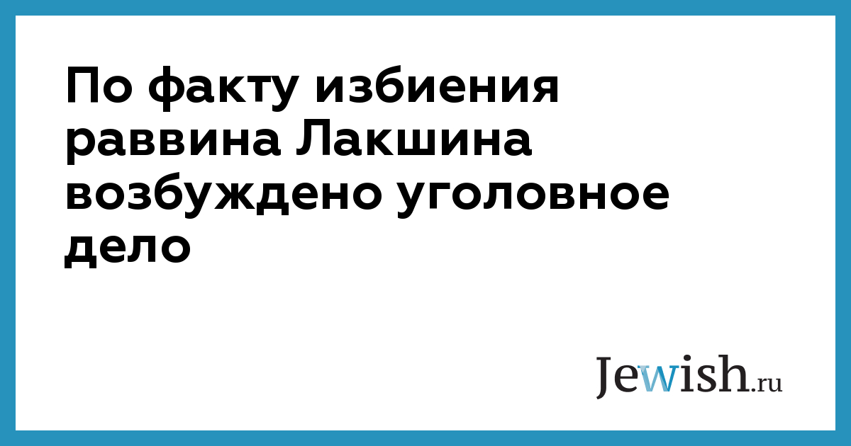 По факту избиения раввина Лакшина возбуждено уголовное дело