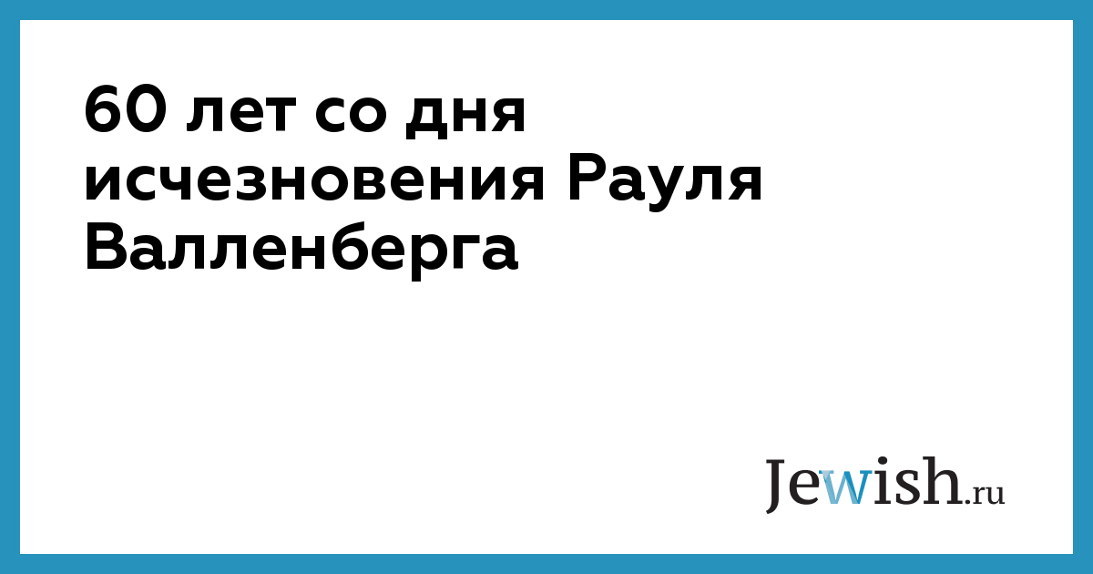 60 лет со дня исчезновения Рауля Валленберга