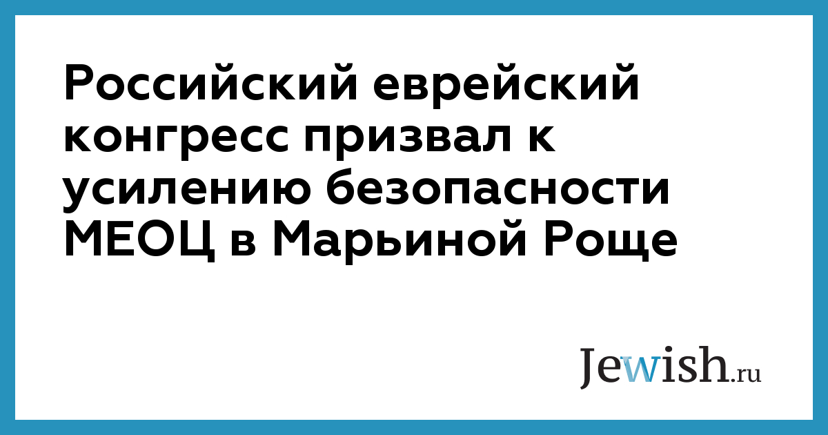 Российский еврейский конгресс призвал к усилению безопасности МЕОЦ в Марьиной Роще