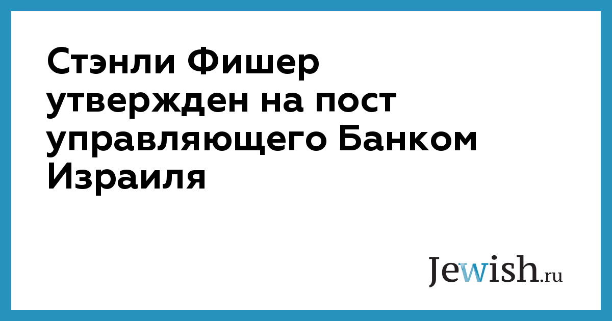 Стэнли Фишер утвержден на пост управляющего Банком Израиля