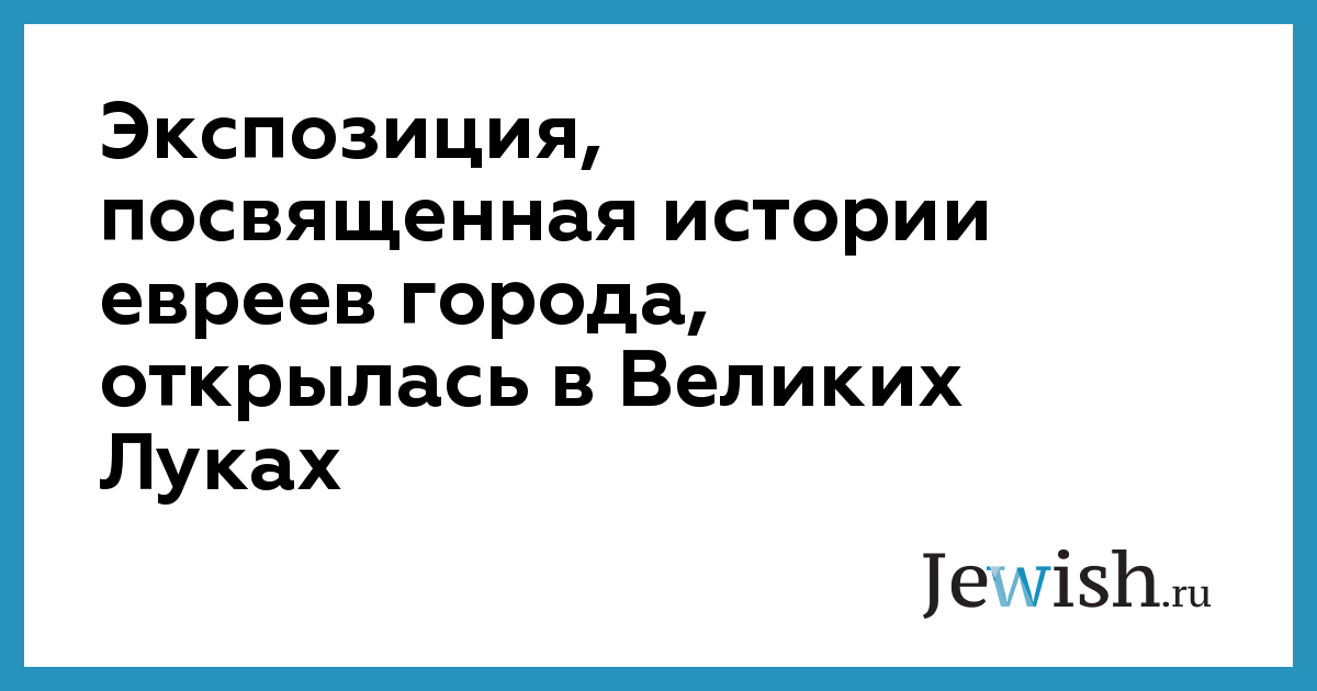 Экспозиция, посвященная истории евреев города, открылась в Великих Луках