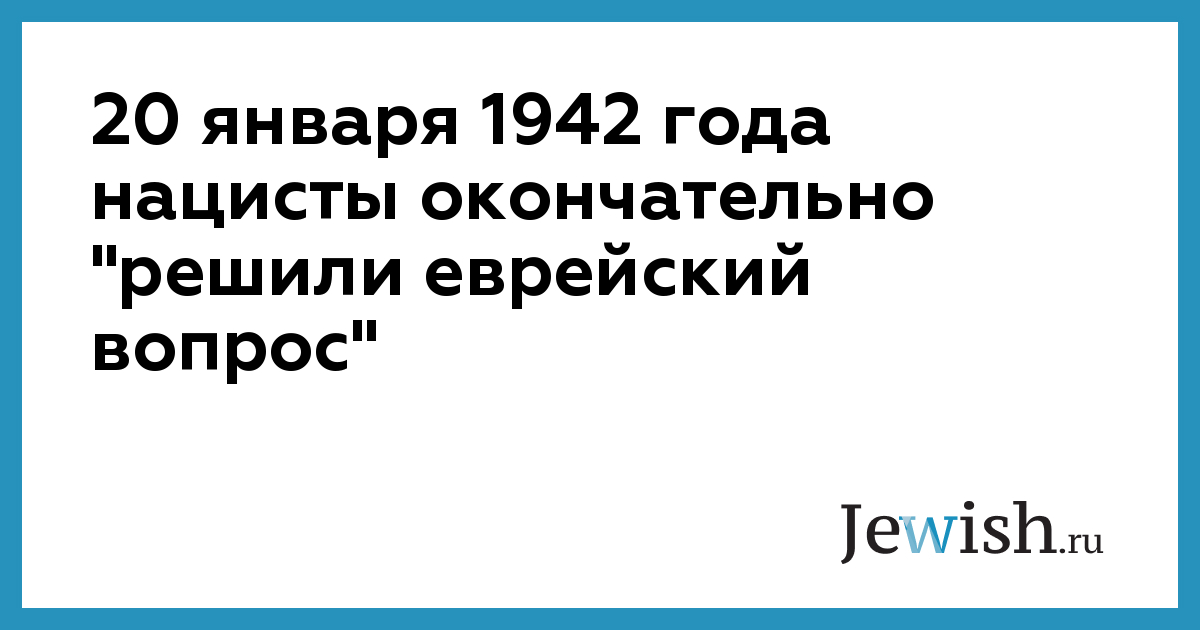20 января 1942 года нацисты окончательно "решили еврейский вопрос"