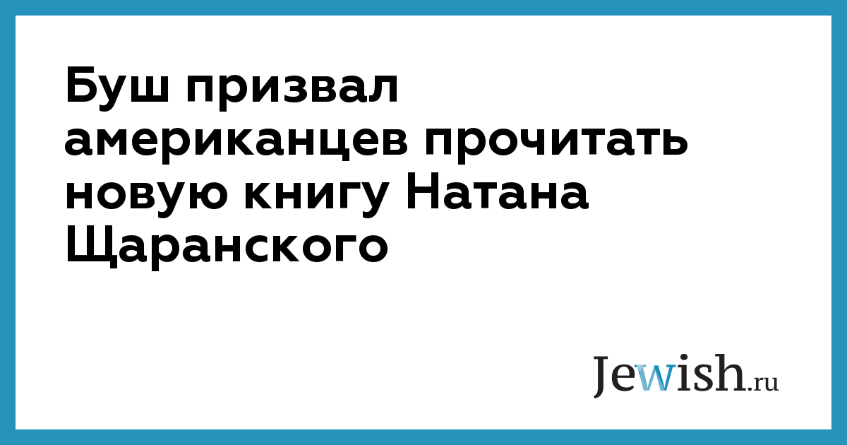 Новая книга Натана Щаранского уже получила весьма лестные отзывы, но вчера она удостоилась самой большой похвалы. В ходе интервью телеканалу Си-Эн-Эн президент Буш обратился с призывом к американцам прочитать книгу израильского министра.