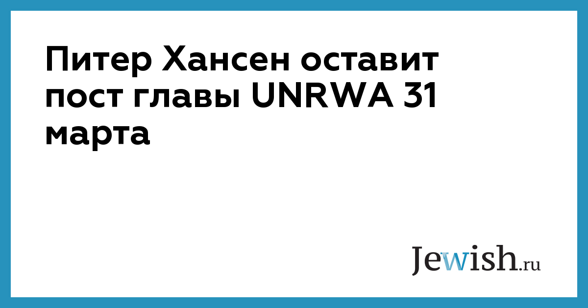 Питер Хансен оставит пост главы UNRWA 31 марта