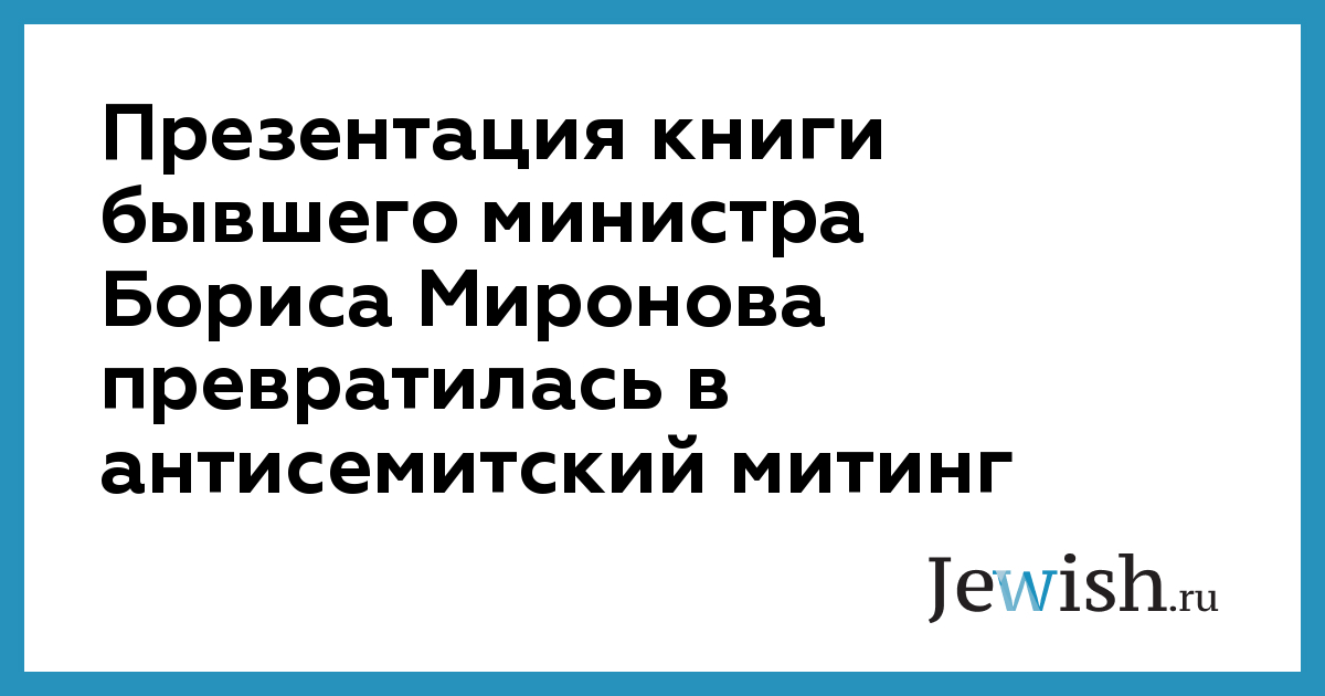 Презентация книги бывшего министра Бориса Миронова превратилась в антисемитский митинг