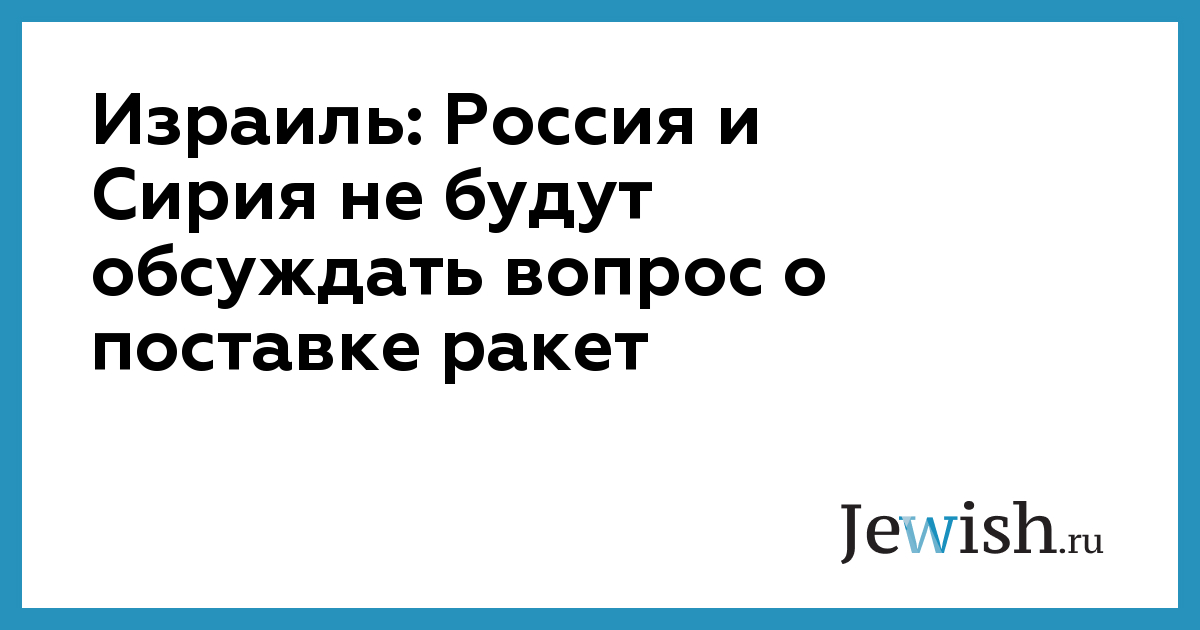 Израиль: Россия и Сирия не будут обсуждать вопрос о поставке ракет