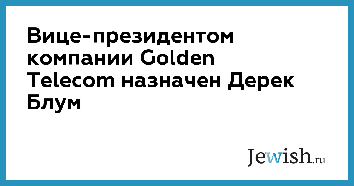Вице-президентом компании Golden Telecom назначен Дерек Блум