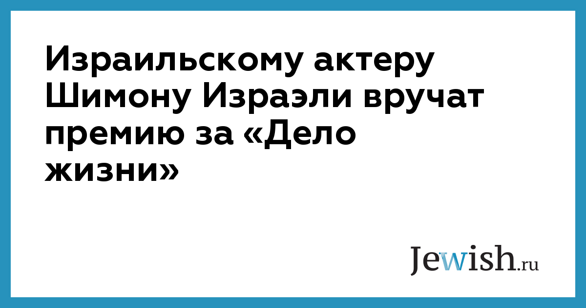 Израильскому актеру Шимону Израэли вручат премию за «Дело жизни»