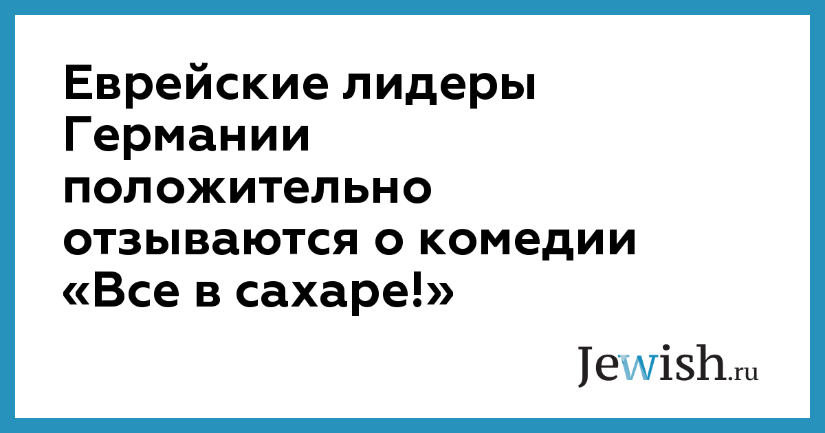 Еврейские лидеры Германии положительно отзываются о комедии «Все в сахаре!»