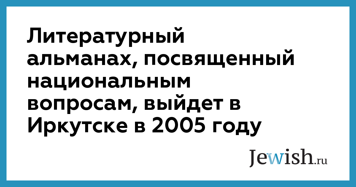Литературный альманах, посвященный национальным вопросам, выйдет в Иркутске в 2005 году