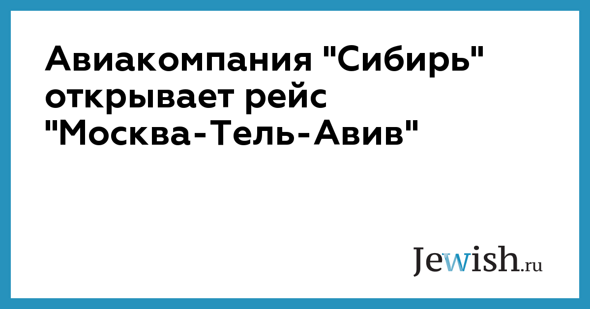 Авиакомпания "Сибирь" открывает рейс "Москва-Тель-Авив"