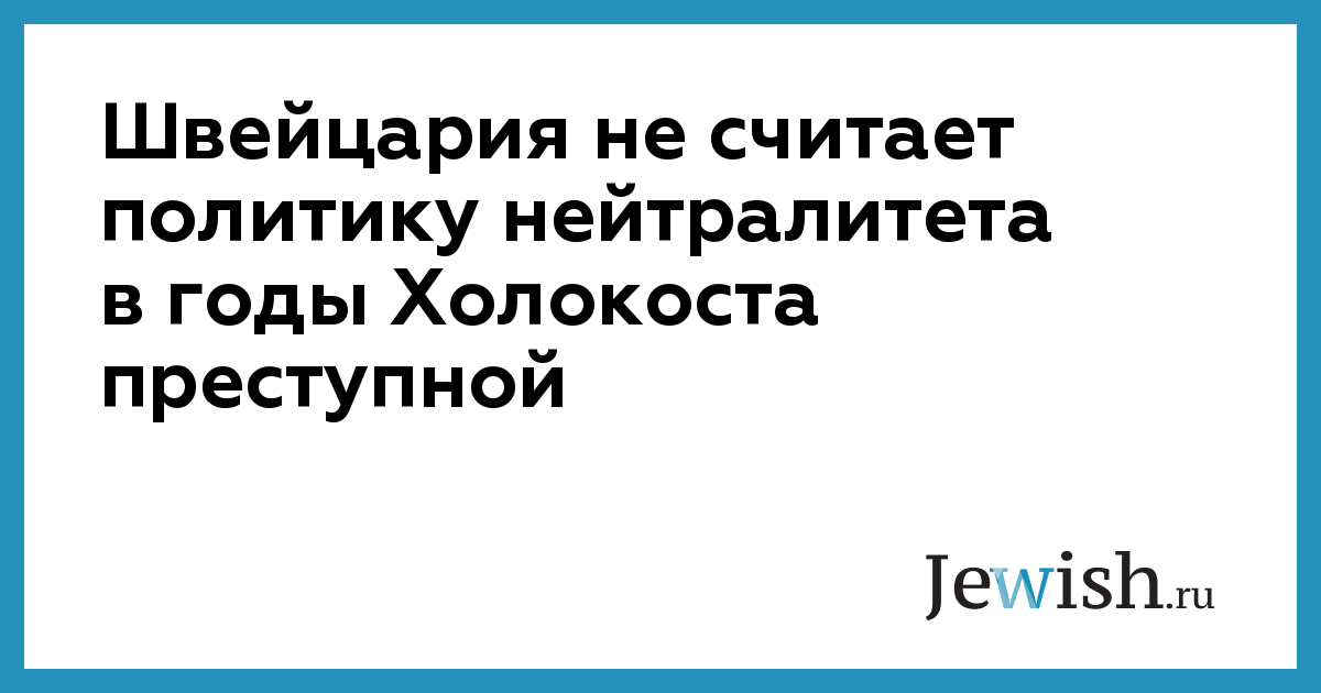Швейцария не считает политику нейтралитета в годы Холокоста преступной