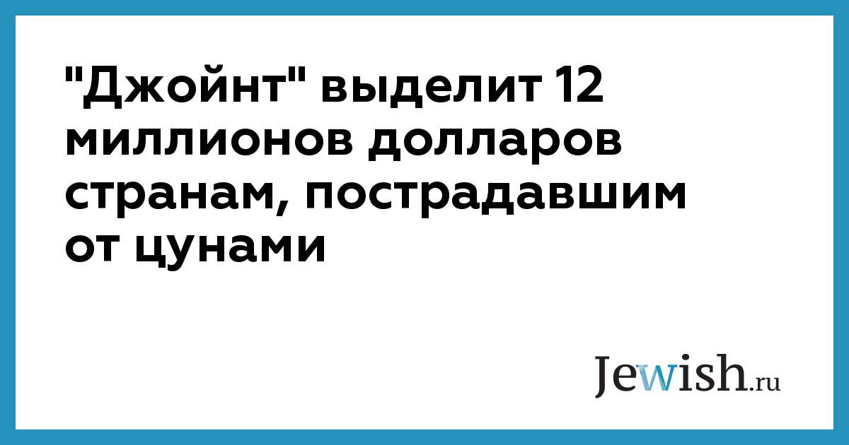 "Джойнт" выделит 12 миллионов долларов странам, пострадавшим от цунами