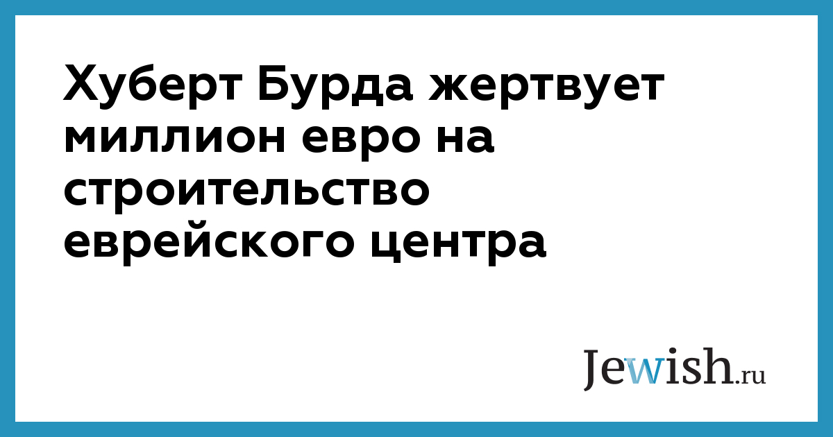 Хуберт Бурда жертвует миллион евро на строительство еврейского центра