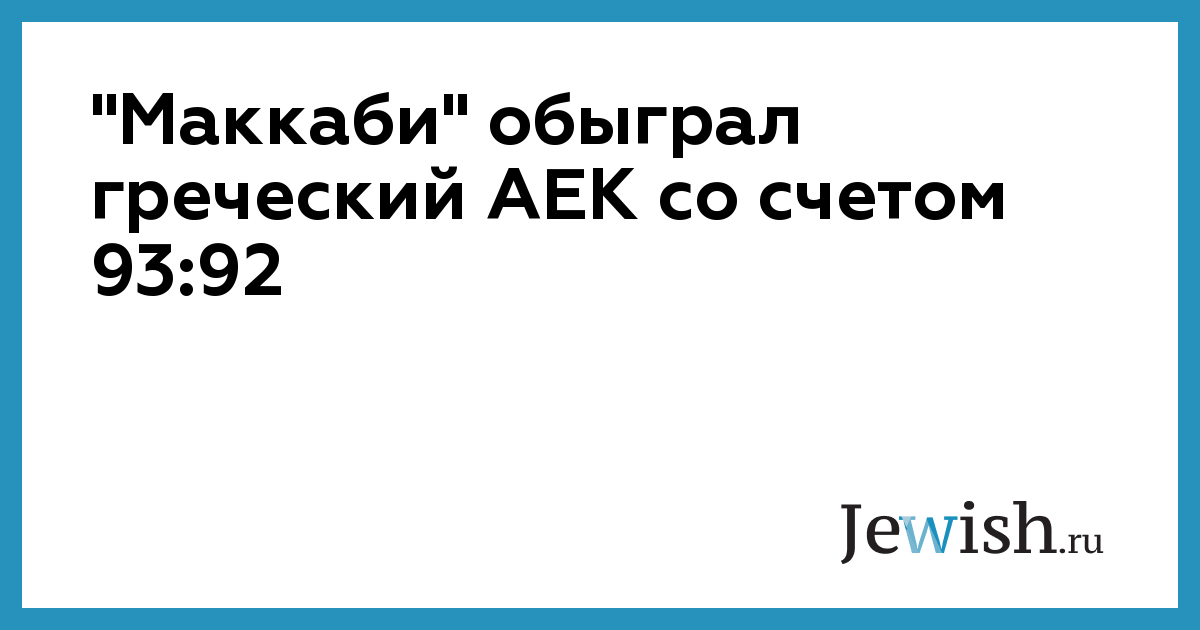 "Маккаби" обыграл греческий АЕК со счетом 93:92