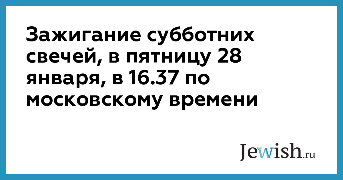 Зажигание субботних свечей, в пятницу 28 января, в 16.37 по московскому времени