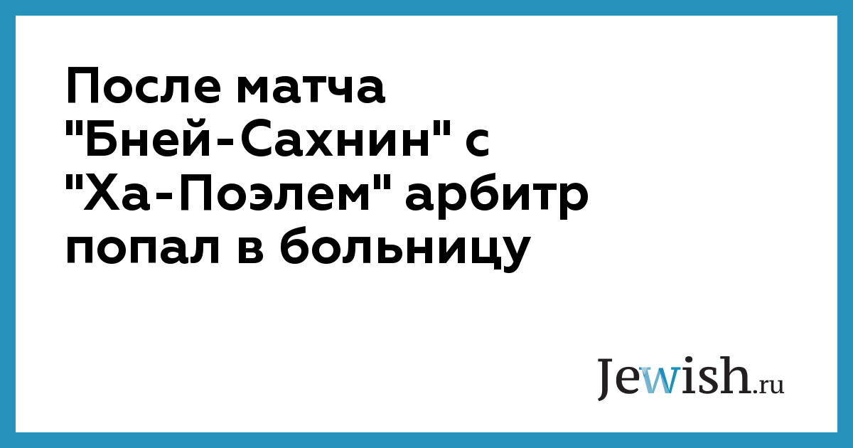 После матча "Бней-Сахнин" с "Ха-Поэлем" арбитр попал в больницу