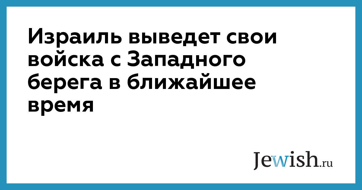 Израиль выведет свои войска с Западного берега в ближайшее время