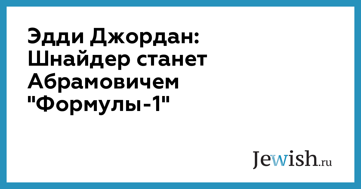 Эдди Джордан: Шнайдер станет Абрамовичем "Формулы-1"