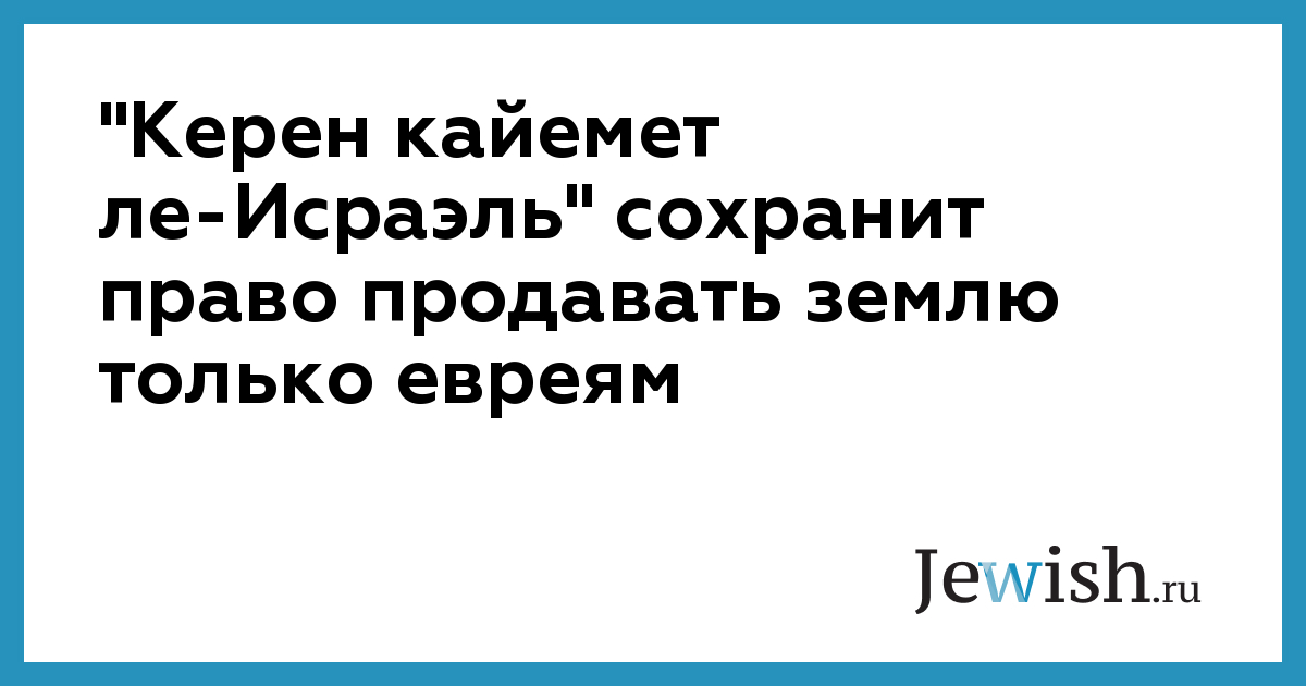 "Керен кайемет ле-Исраэль" сохранит право продавать землю только евреям
