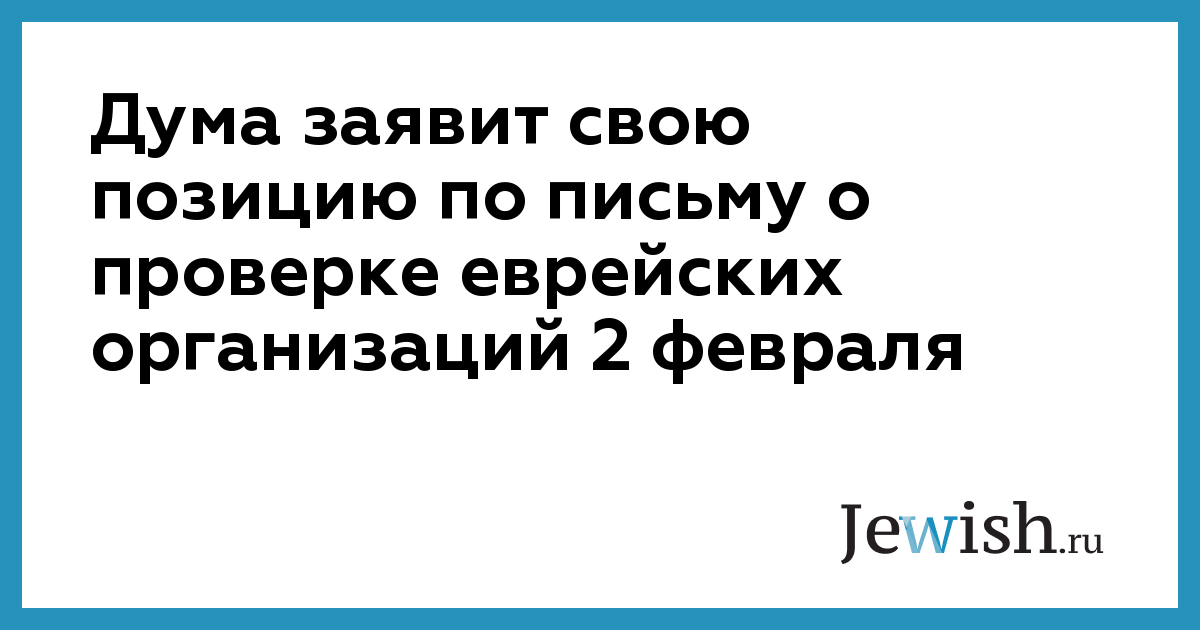 Дума заявит свою позицию по письму о проверке еврейских организаций 2 февраля