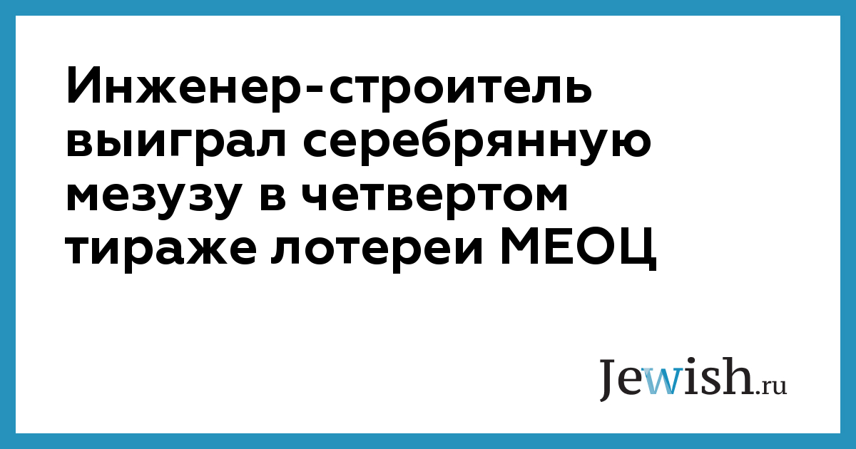 Инженер-строитель выиграл серебрянную мезузу в четвертом тираже лотереи МЕОЦ