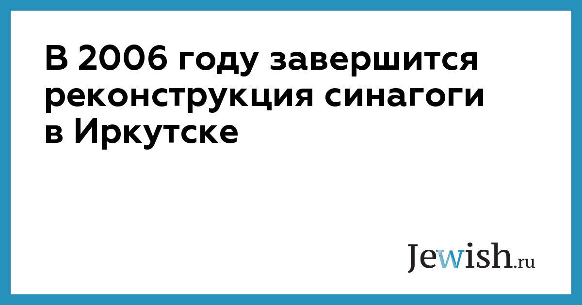 В 2006 году завершится реконструкция синагоги в Иркутске