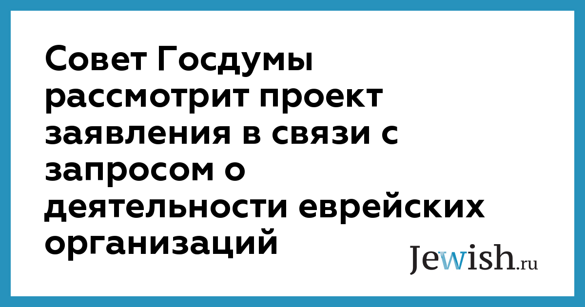 Совет Госдумы рассмотрит проект заявления в связи с запросом о деятельности еврейских организаций