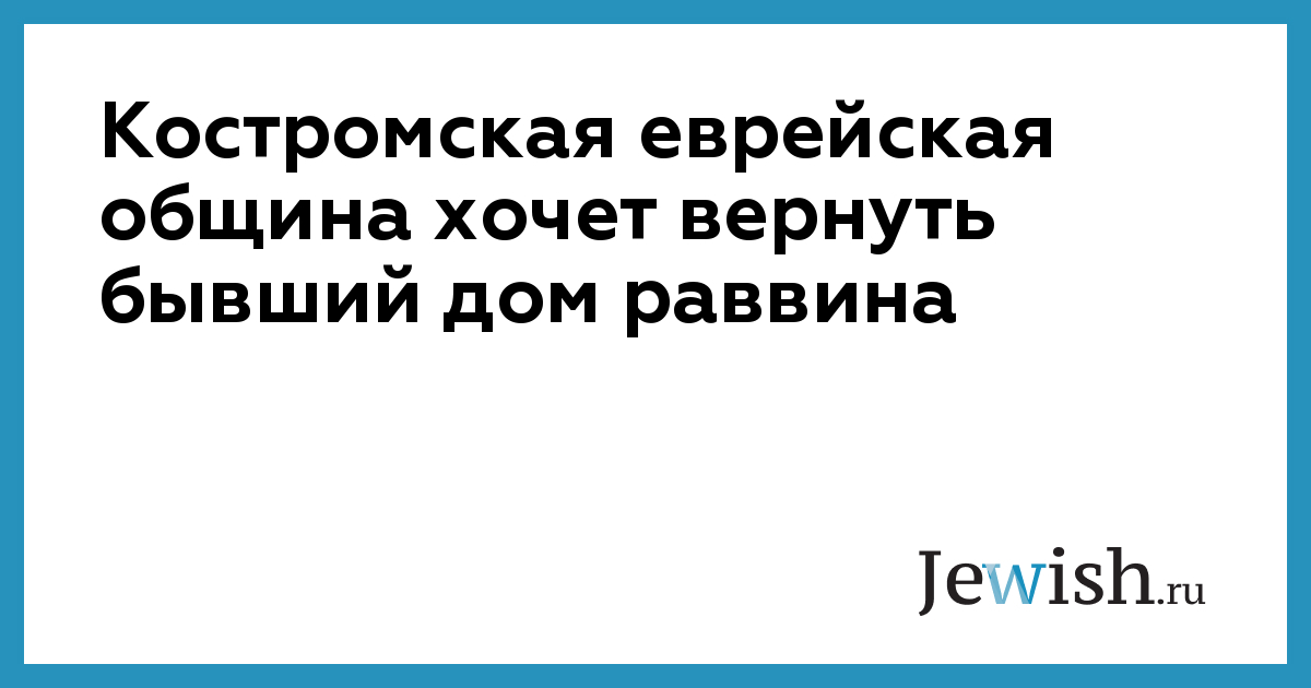 На протяжении нескольких лет еврейская община города просит городские власти вернуть общине дом раввина. Ситуация осложняется тем, что здание принадлежит городской администрации и в данный момент, в нем находится федеральная структура — охотничье хозяйство. Раввин Костромы Нисон Руппо надеется, что получение официальных документов ускорит возвращение общинной собственности. "Община собирается использовать дом для благотворительной столовой и учебных заведений", — сказал раввин Руппо.