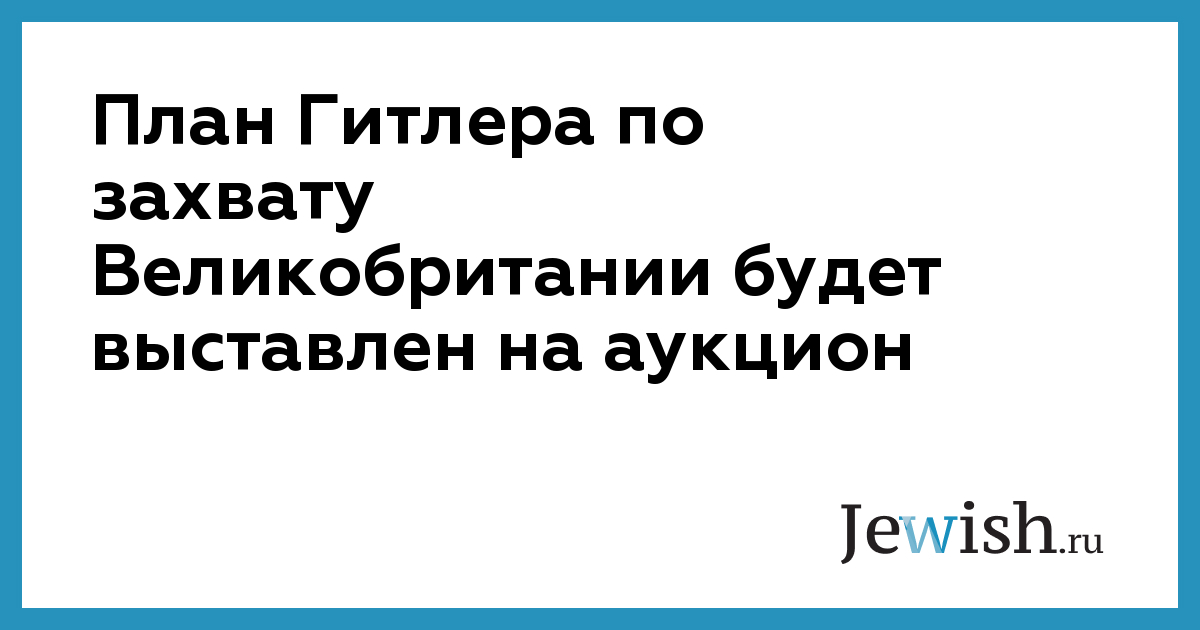 План Гитлера по захвату Великобритании будет выставлен на аукцион