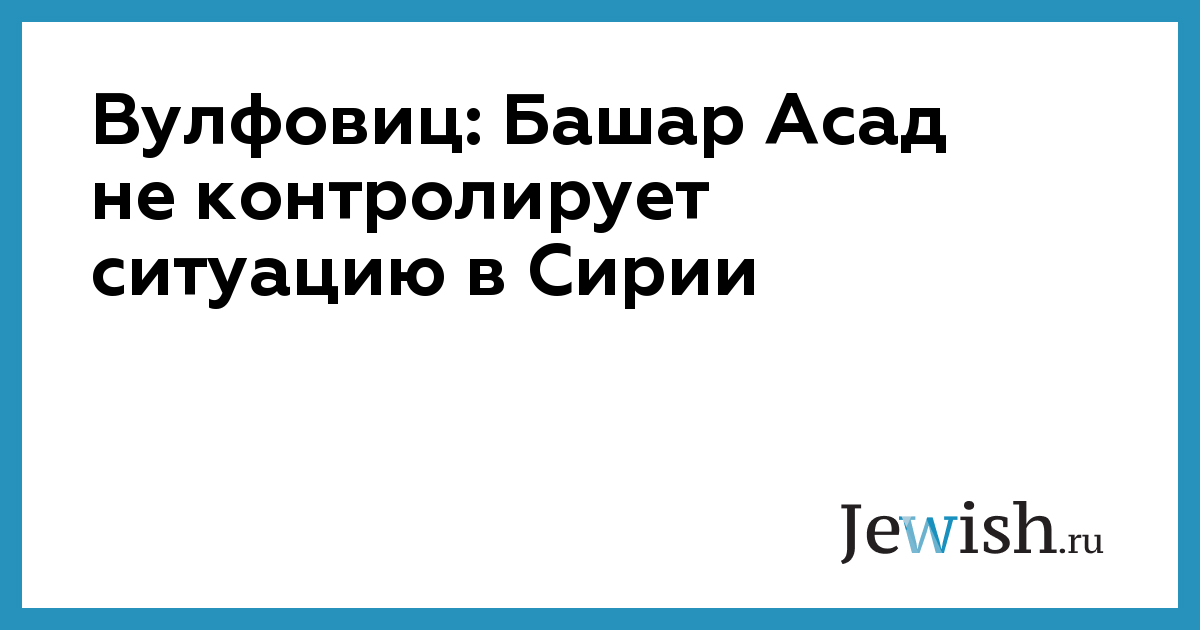 Вулфовиц: Башар Асад не контролирует ситуацию в Сирии