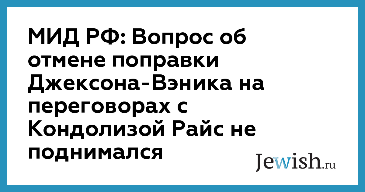 МИД РФ: Вопрос об отмене поправки Джексона-Вэника на переговорах с Кондолизой Райс не поднимался