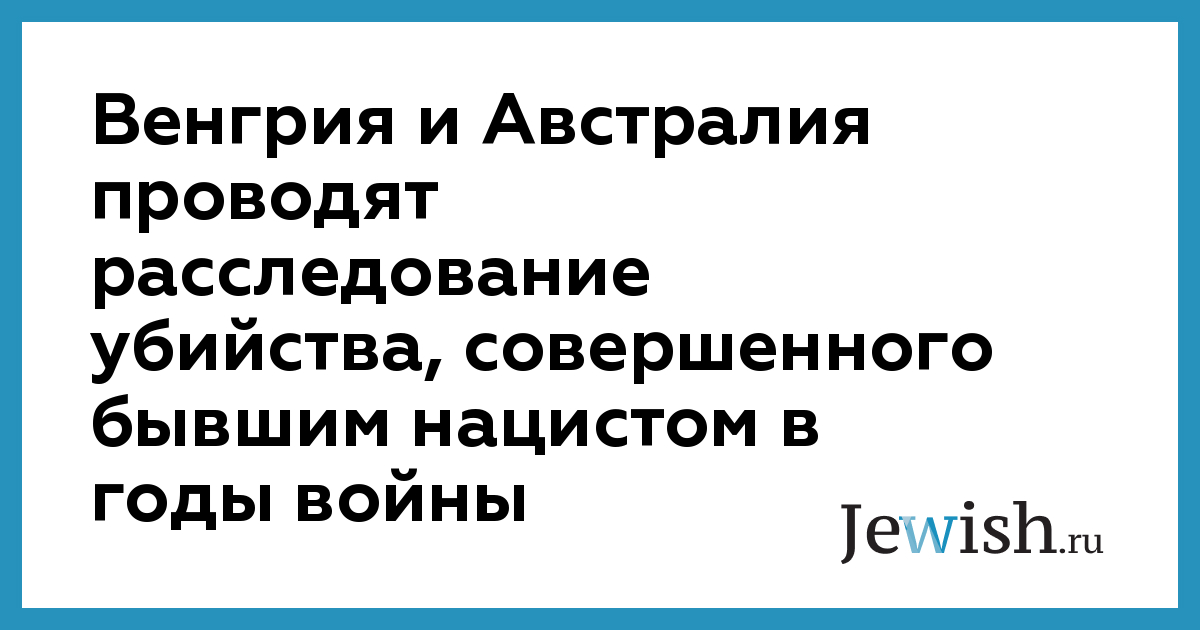 Венгрия и Австралия проводят расследование убийства, совершенного бывшим нацистом в годы войны