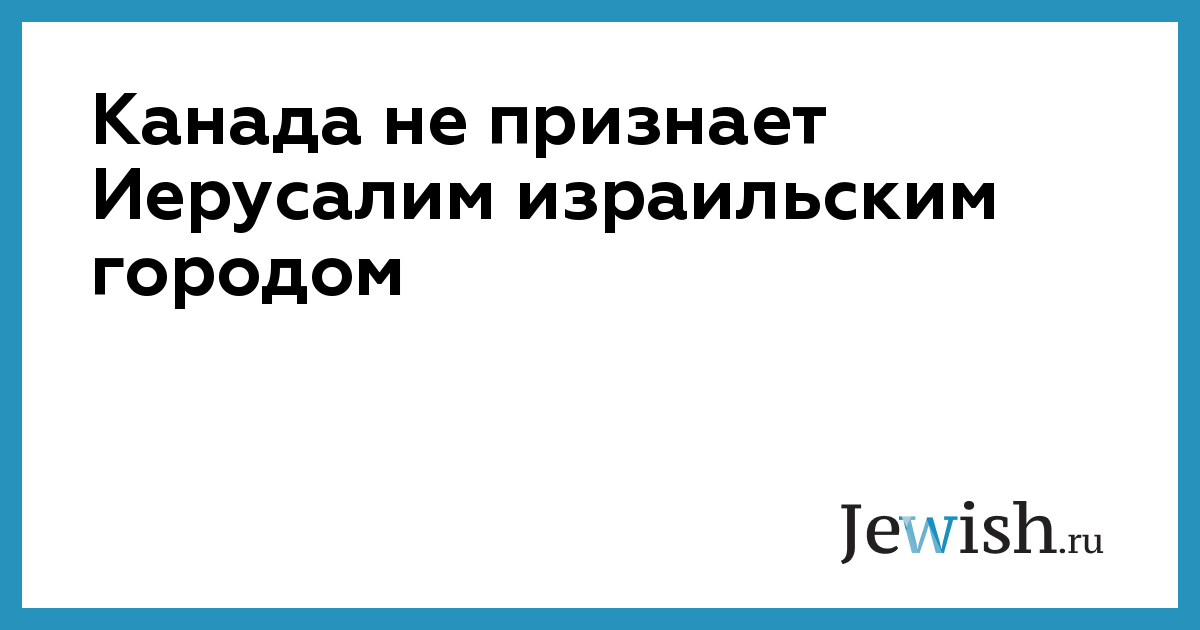 Канада не признает Иерусалим израильским городом